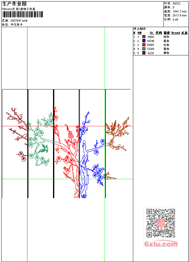 - emb花版参数: 大小:197.50 KB / 尺寸:2618*1942[毫米] / 针数:59723针 / 线色:5 / 格式:emb / 版本:e2
