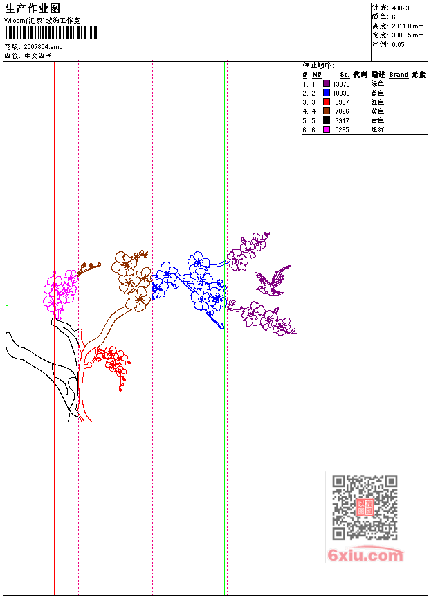 - emb花版参数: 大小:222.50 KB / 尺寸:3090*2012[毫米] / 针数:48823针 / 线色:6 / 格式:emb / 版本:e2