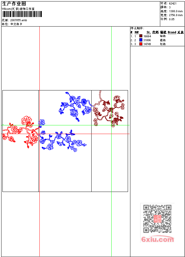 - emb花版参数: 大小:312.00 KB / 尺寸:2757*1388[毫米] / 针数:62421针 / 线色:3 / 格式:emb / 版本:e2