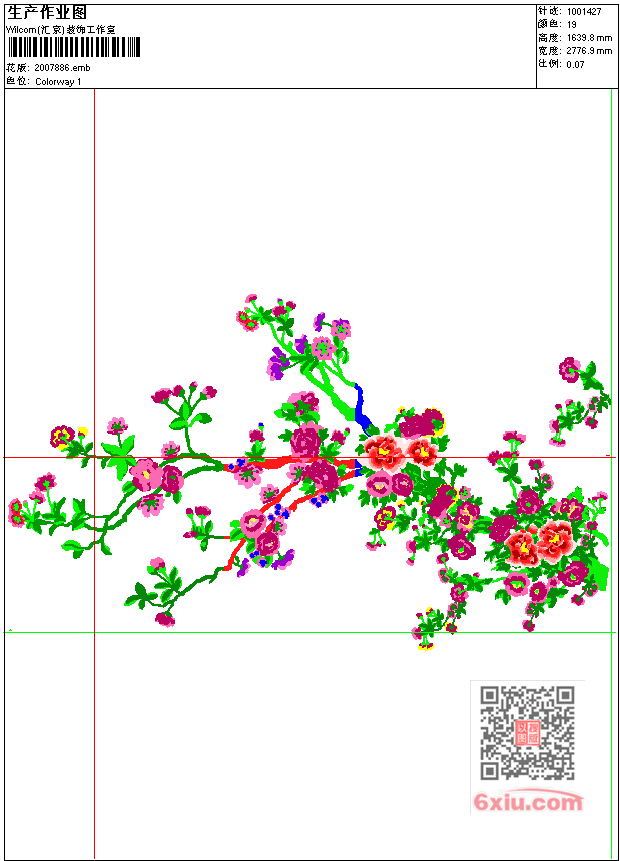 - emb花版参数: 大小:5.13 MB / 尺寸:2777*1640[毫米] / 针数:1001427针 / 线色:19 / 格式:emb / 版本:e2