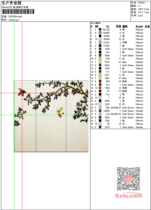 - emb花版参数: 大小:2.93 MB / 尺寸:2371*1457[毫米] / 针数:535781针 / 线色:11 / 格式:emb / 版本:e2