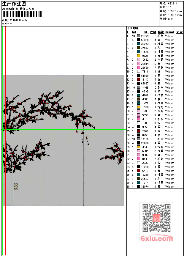 - emb花版参数: 大小:4.65 MB / 尺寸:1996*1358[毫米] / 针数:623314针 / 线色:10 / 格式:emb / 版本:e2