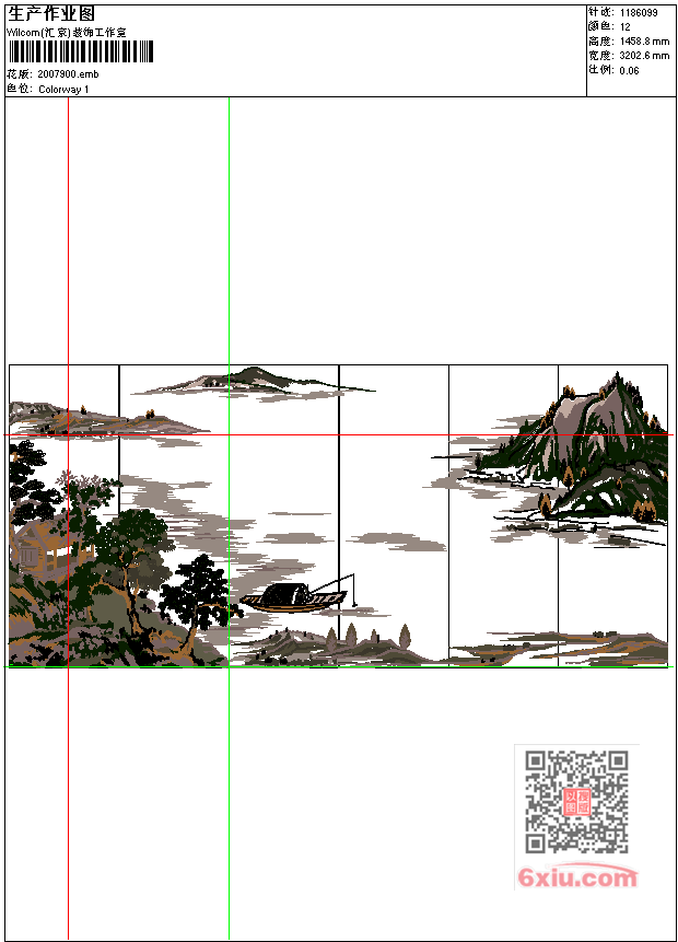 - emb花版参数: 大小:4.34 MB / 尺寸:3203*1459[毫米] / 针数:1186099针 / 线色:12 / 格式:emb / 版本:e2