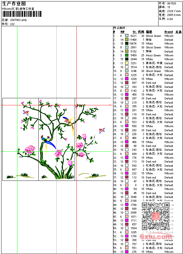 - emb花版参数: 大小:5.14 MB / 尺寸:2886*2330[毫米] / 针数:981520针 / 线色:15 / 格式:emb / 版本:e2