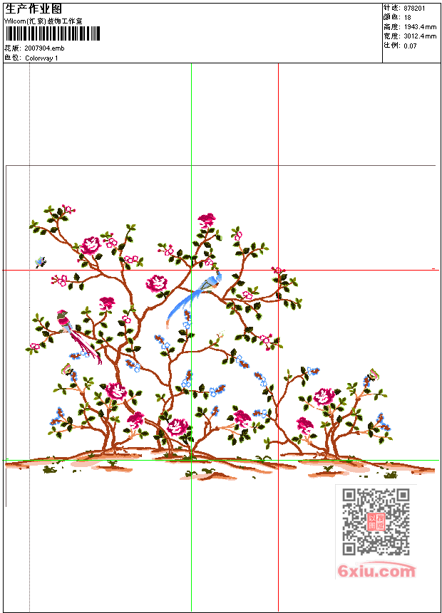 - emb花版参数: 大小:4.62 MB / 尺寸:3012*1943[毫米] / 针数:878201针 / 线色:18 / 格式:emb / 版本:e2