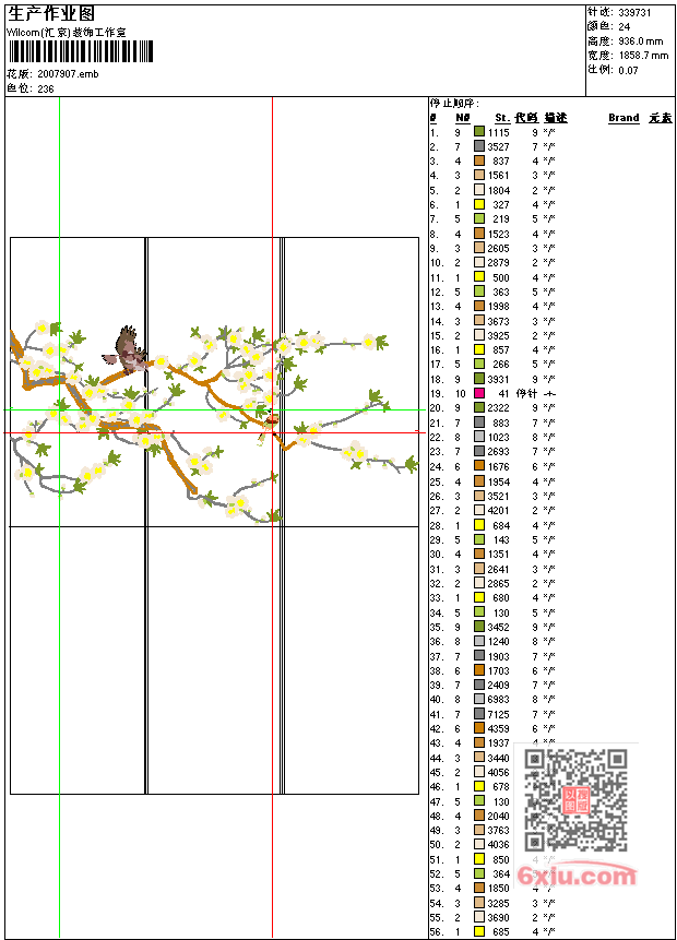 - emb花版参数: 大小:2.78 MB / 尺寸:1859*936[毫米] / 针数:339731针 / 线色:24 / 格式:emb / 版本:e2