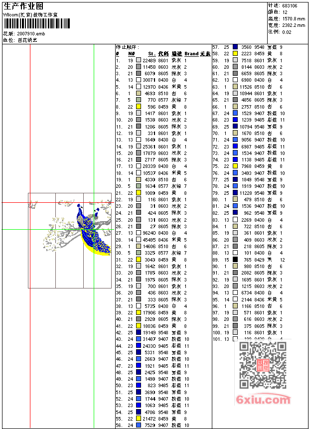- emb花版参数: 大小:3.45 MB / 尺寸:2382*1571[毫米] / 针数:683106针 / 线色:12 / 格式:emb / 版本:e2