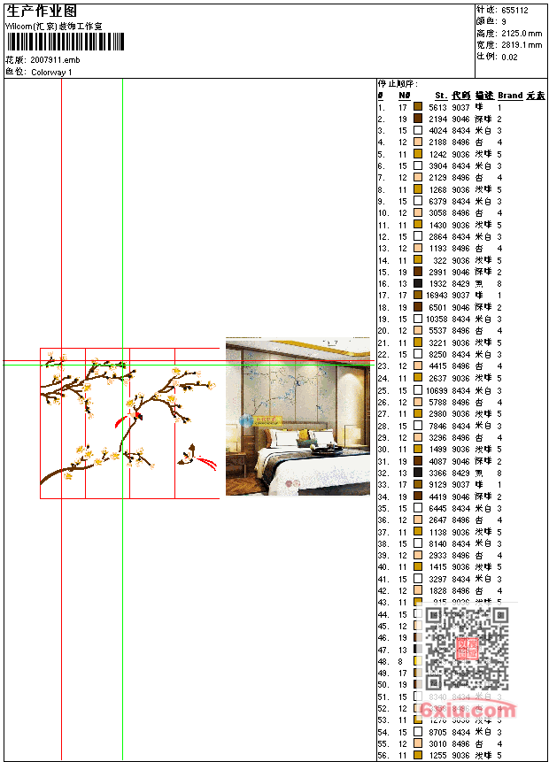 - emb花版参数: 大小:2.53 MB / 尺寸:2819*2125[毫米] / 针数:655112针 / 线色:9 / 格式:emb / 版本:e2