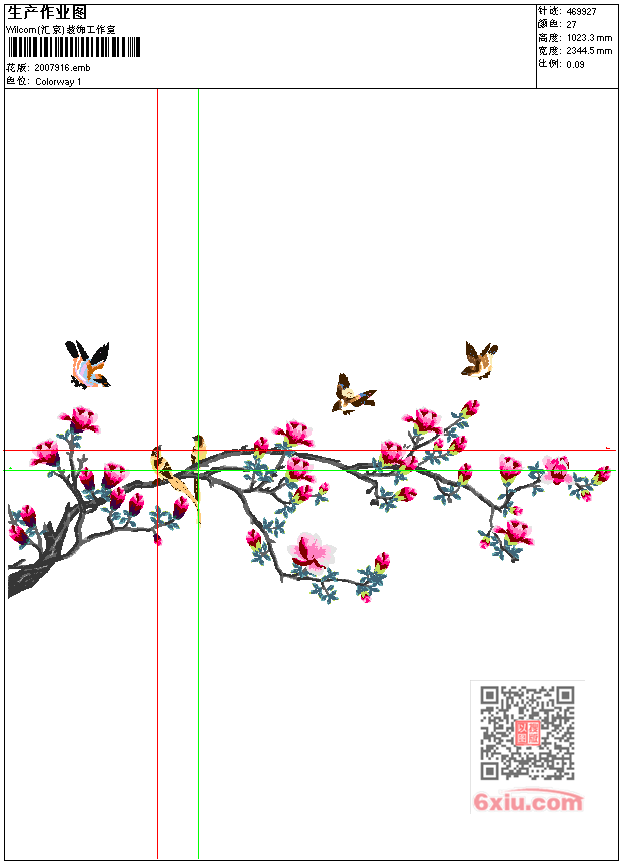 - emb花版参数: 大小:2.61 MB / 尺寸:2345*1023[毫米] / 针数:469927针 / 线色:27 / 格式:emb / 版本:e2.0