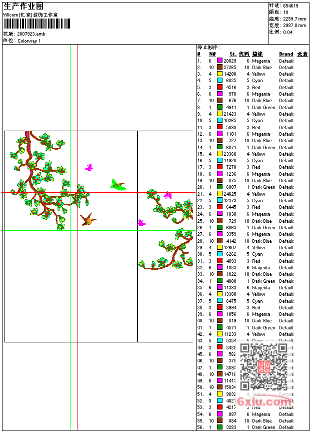 - emb花版参数: 大小:2.53 MB / 尺寸:2987*2260[毫米] / 针数:654619针 / 线色:10 / 格式:emb / 版本:e2.0