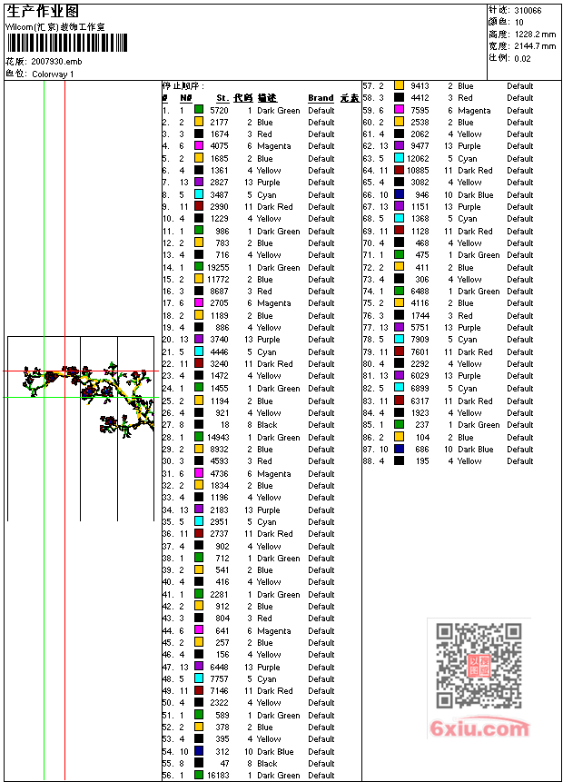 - emb花版参数: 大小:1.27 MB / 尺寸:2145*1228[毫米] / 针数:310066针 / 线色:10 / 格式:emb / 版本:e2.0