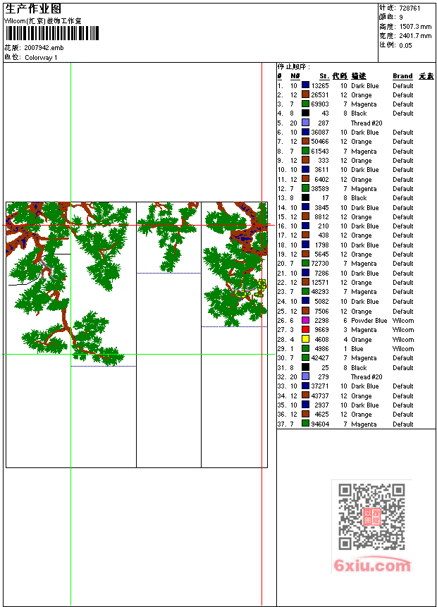 - emb花版参数: 大小:3.66 MB / 尺寸:2402*1507[毫米] / 针数:728761针 / 线色:9 / 格式:emb / 版本:e2.0