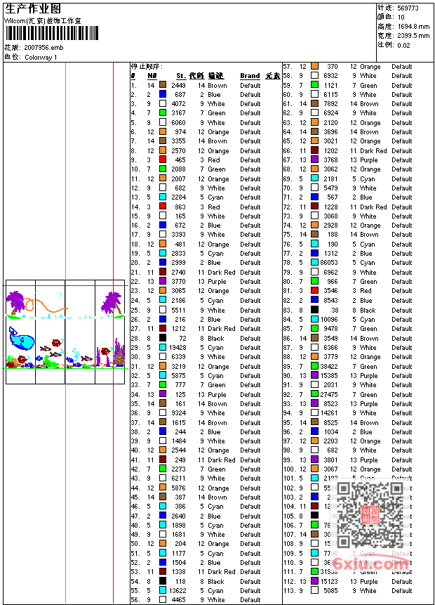 - emb花版参数: 大小:1.85 MB / 尺寸:2400*1695[毫米] / 针数:569773针 / 线色:10 / 格式:emb / 版本:2006