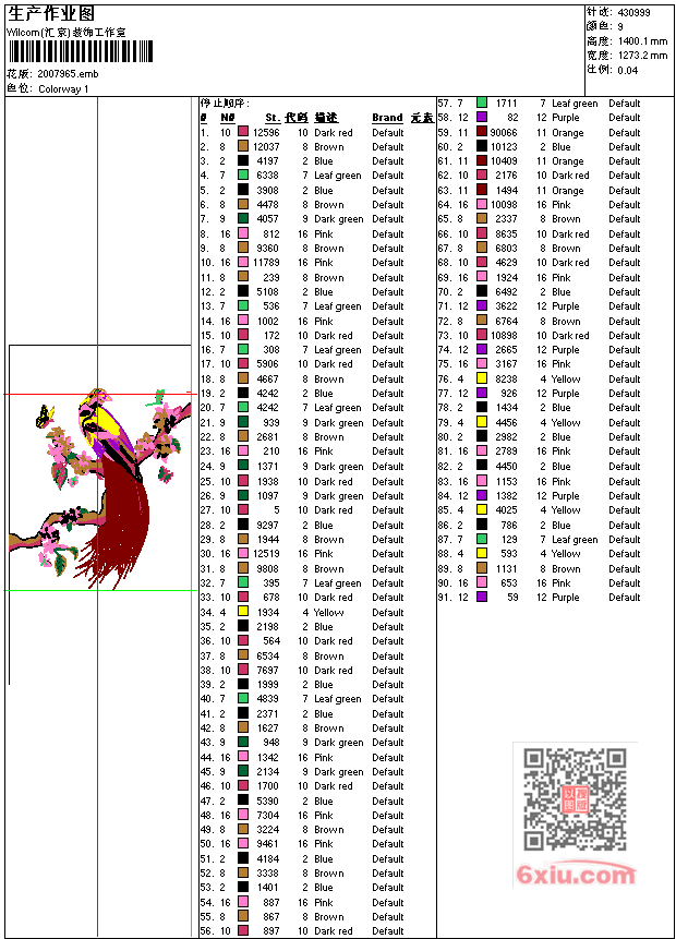 - emb花版参数: 大小:1.49 MB / 尺寸:1273*1400[毫米] / 针数:430999针 / 线色:9 / 格式:emb / 版本:e2.0