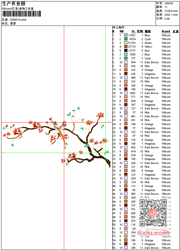 - emb花版参数: 大小:1.70 MB / 尺寸:2202*1235[毫米] / 针数:299392针 / 线色:11 / 格式:emb / 版本:e2