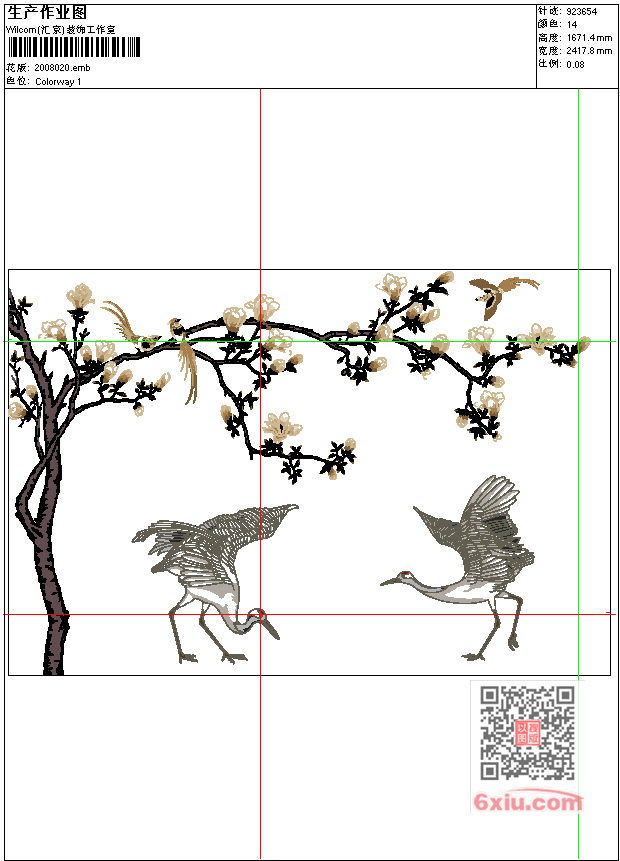- emb花版参数: 大小:4.60 MB / 尺寸:2418*1671[毫米] / 针数:923654针 / 线色:14 / 格式:emb / 版本:e2