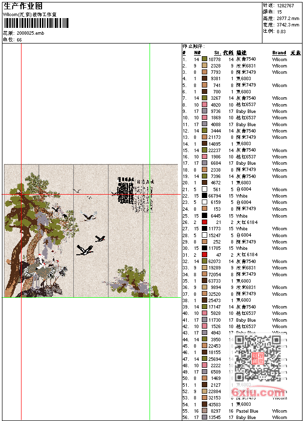 - emb花版参数: 大小:11.27 MB / 尺寸:3742*2877[毫米] / 针数:1282767针 / 线色:15 / 格式:emb / 版本:e2