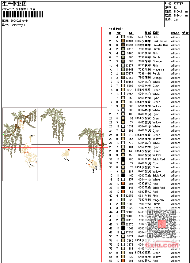 - emb花版参数: 大小:3.50 MB / 尺寸:2886*1850[毫米] / 针数:777795针 / 线色:12 / 格式:emb / 版本:e2