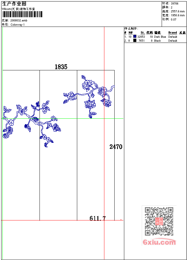 - emb花版参数: 大小:210.00 KB / 尺寸:1959*2558[毫米] / 针数:39706针 / 线色:2 / 格式:emb / 版本:e2.0