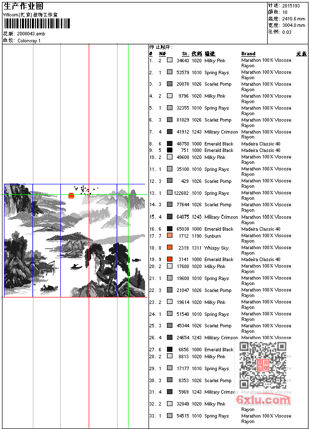 - emb花版参数: 大小:8.98 MB / 尺寸:3004*2411[毫米] / 针数:2015193针 / 线色:10 / 格式:emb / 版本:e2