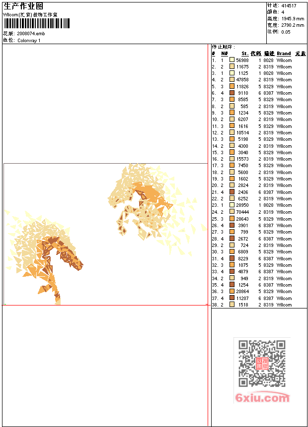- emb花版参数: 大小:1.04 MB / 尺寸:2790*1946[毫米] / 针数:414517针 / 线色:4 / 格式:emb / 版本:e2