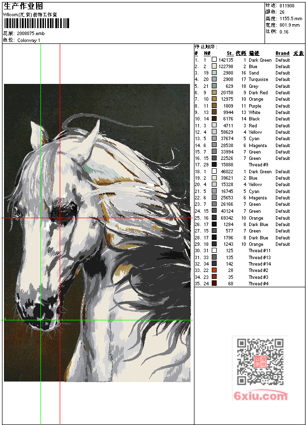 - emb花版参数: 大小:9.91 MB / 尺寸:802*1156[毫米] / 针数:811908针 / 线色:26 / 格式:emb / 版本:e2