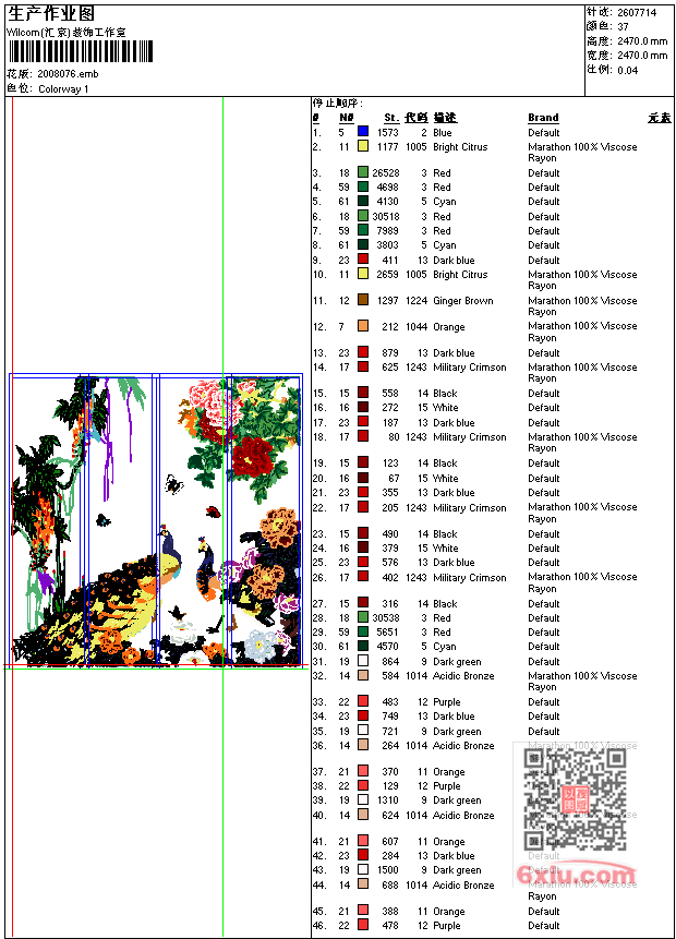 - emb花版参数: 大小:12.23 MB / 尺寸:2470*2470[毫米] / 针数:2607714针 / 线色:37 / 格式:emb / 版本:e2