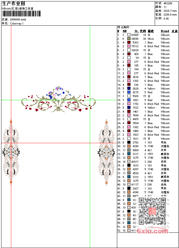 - emb花版参数: 大小:1.61 MB / 尺寸:2289*2030[毫米] / 针数:463206针 / 线色:11 / 格式:emb / 版本:e2