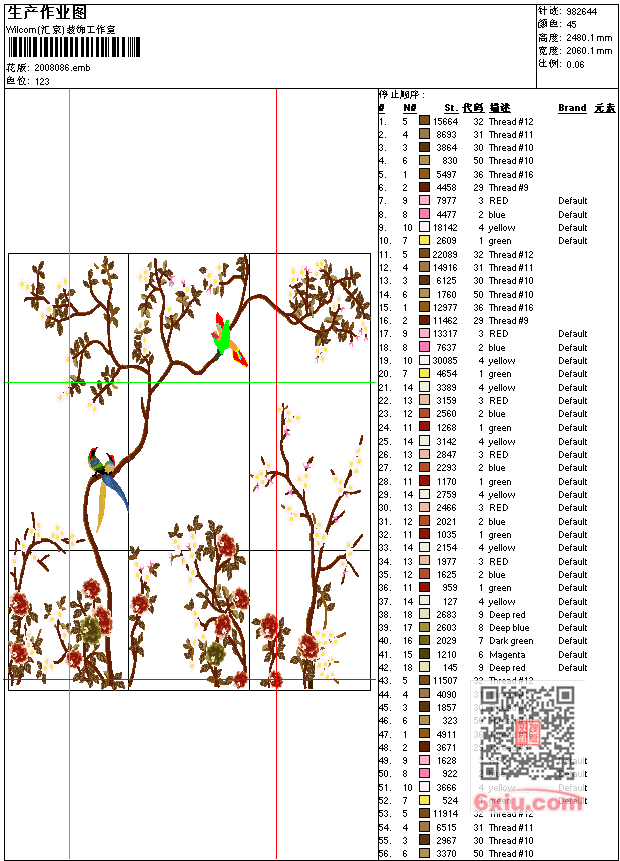 - emb花版参数: 大小:4.84 MB / 尺寸:2060*2480[毫米] / 针数:982644针 / 线色:45 / 格式:emb / 版本:e2.0