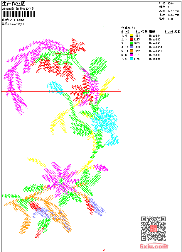 - emb花版参数: 大小:75.50 KB / 尺寸:103*177[毫米] / 针数:9304针 / 线色:7 / 格式:emb / 版本:e2