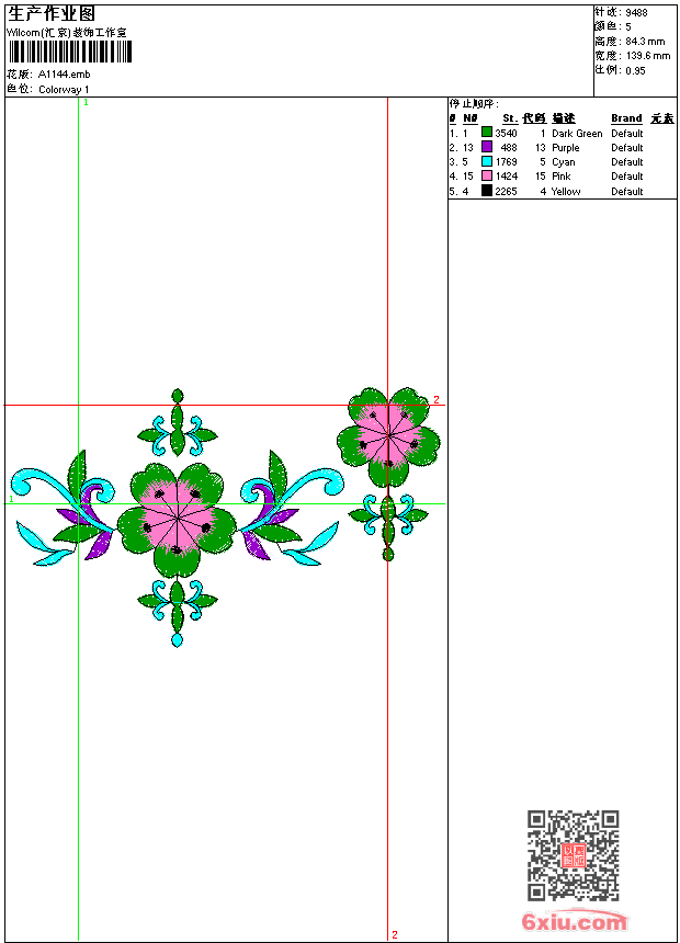 靓花 点此上传花版兑乐绣币/现金 emb花版参数: 大小:92.50 KB / 尺寸:140*84[毫米] / 针数:9488针 / 线色:5 / 格式:emb / 版本:e2 版带文件需绣花软件方可打开,可配色打印导出各种格式或直接上机绣。如无绣花软件可下载1:1模拟效果图。 PNG图片信息:大小:0.1(MB) /图宽*高:529x319(像素) emb下载 1:1图下载 关闭 相似花版: 汉服 鸟 汉服 鸟 鹰头 汉服 蝴蝶 靓花 花朵 牛 十二生肖 鲤鱼 十字绣花 十字绣花 十字绣花 十字绣花 鹤 美人鱼 美人鱼 汉服 鸟 汉服 虎头花 抱枕 穗 恐龙 上一个花样:美女 套娃 下一个花样:汉服 鸟