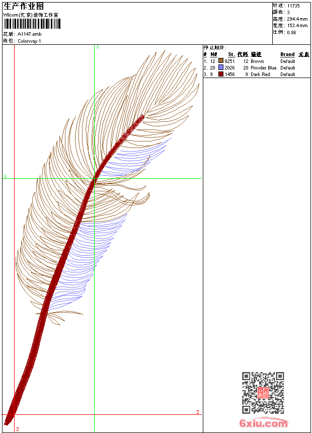 羽毛 点此上传花版兑乐绣币/现金 emb花版参数: 大小:48.00 KB / 尺寸:153*294[毫米] / 针数:11735针 / 线色:3 / 格式:emb / 版本:e2 版带文件需绣花软件方可打开,可配色打印导出各种格式或直接上机绣。如无绣花软件可下载1:1模拟效果图。 PNG图片信息:大小:0.3(MB) /图宽*高:581x1114(像素) emb下载 1:1图下载 关闭 相似花版: 羽毛 美女 套娃 靓花 汉服 鸟 汉服 鸟 鹰头 汉服 蝴蝶 靓花 花朵 牛 十二生肖 鲤鱼 十字绣花 十字绣花 十字绣花 十字绣花 鹤 美人鱼 美人鱼 汉服 鸟 汉服 上一个花样:戏服 中国 古代 波浪 下一个花样:羽毛