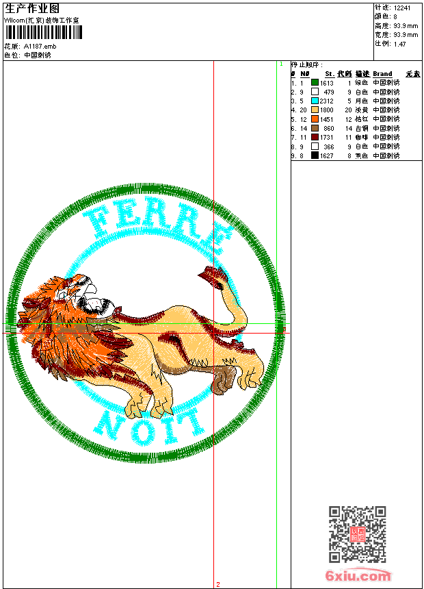 狮子 点此上传花版兑乐绣币/现金 emb花版参数: 大小:108.00 KB / 尺寸:94*94[毫米] / 针数:12241针 / 线色:8 / 格式:emb / 版本:e2 版带文件需绣花软件方可打开,可配色打印导出各种格式或直接上机绣。如无绣花软件可下载1:1模拟效果图。 PNG图片信息:大小:0.2(MB) /图宽*高:356x356(像素) emb下载 1:1图下载 关闭 相似花版: 鸟 靓花 靓花 汉服 猫鱼 骷髅 波浪 鹰头 兔子 波浪 波浪 波浪 简笔花 简笔花 简单花 靓花 章仔 靓花 靓花 汉服 靓花 汉服 靓花 汉服 靓花 上一个花样:鸟 靓花 下一个花样:鸟 靓花