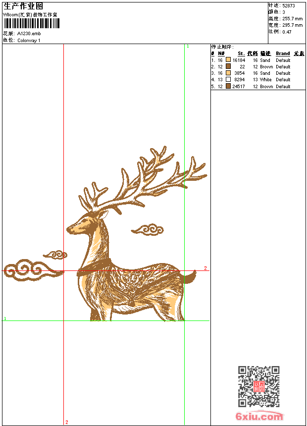 鹿 梅花鹿 点此上传花版兑乐绣币/现金 emb花版参数: 大小:290.00 KB / 尺寸:296*256[毫米] / 针数:52873针 / 线色:3 / 格式:emb / 版本:e2 版带文件需绣花软件方可打开,可配色打印导出各种格式或直接上机绣。如无绣花软件可下载1:1模拟效果图。 PNG图片信息:大小:0.7(MB) /图宽*高:1119x968(像素) emb下载 1:1图下载 关闭 相似花版: 蝴蝶 樱桃 鹤 樱桃 汉服 汉服 章仔 袋鼠 唐老鸭 米奇 鸟 汉服 男 标志 男 标志 汉服 汉服 男 标志 圆 中国风 唐装 汉服 凤凰 绳花 章标 上一个花样:鹤 下一个花样:蝴蝶