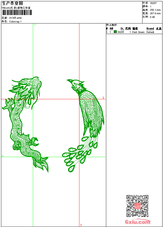 龙凤 点此上传花版兑乐绣币/现金 emb花版参数: 大小:253.00 KB / 尺寸:268*250[毫米] / 针数:30207针 / 线色:1 / 格式:emb / 版本:e2 版带文件需绣花软件方可打开,可配色打印导出各种格式或直接上机绣。如无绣花软件可下载1:1模拟效果图。 PNG图片信息:大小:0.5(MB) /图宽*高:1013x947(像素) emb下载 1:1图下载 关闭 相似花版: 豹头 简单花 汉服 虎 官府 回避 肃静 狗 雪橇 汉服 简单花 老虎 翅膀 梅花鹿 鸟 鸟 靓花 汉服 龙头 汉服 汉服 汉服 猫 狗 汉服 风景 建筑 汉服 上一个花样:猫头 下一个花样:豹头