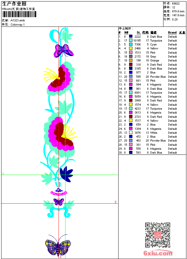 蝴蝶条 点此上传花版兑乐绣币/现金 emb花版参数: 大小:299.00 KB / 尺寸:148*880[毫米] / 针数:69822针 / 线色:12 / 格式:emb / 版本:e2 版带文件需绣花软件方可打开,可配色打印导出各种格式或直接上机绣。如无绣花软件可下载1:1模拟效果图。 PNG图片信息:大小:1.6(MB) /图宽*高:560x3328(像素) emb下载 1:1图下载 关闭 相似花版: 靓花 龙头 兔子 抱枕 兔子 猫头 猫头 狗头 汉服 猪头 猪头 猪头 猪头 猪头 猫 鹤 兔子 猫头 龙凤 豹头 简单花 上一个花样:汉服 下一个花样:靓花