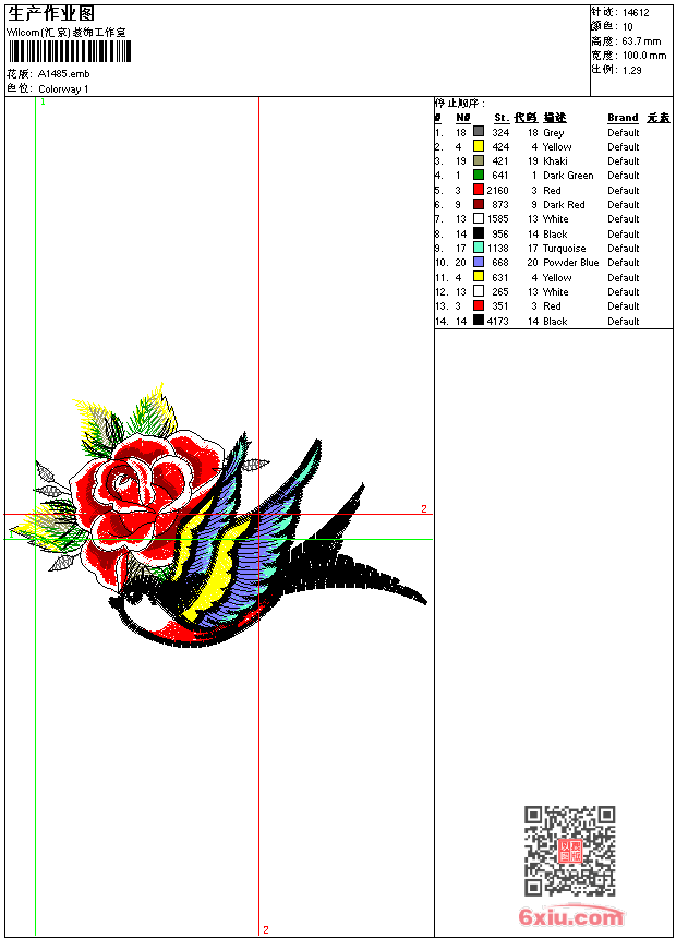 鸟 玫瑰花 点此上传花版兑乐绣币/现金 emb花版参数: 大小:110.50 KB / 尺寸:100*64[毫米] / 针数:14612针 / 线色:10 / 格式:emb / 版本:e2 版带文件需绣花软件方可打开,可配色打印导出各种格式或直接上机绣。如无绣花软件可下载1:1模拟效果图。 PNG图片信息:大小:0.1(MB) /图宽*高:379x241(像素) emb下载 1:1图下载 关闭 相似花版: 蜜蜂 汉服 恐龙 汉服 宝剑 汉服 宝剑 莲花 凤凰 牛头 美女 动漫 鱼抽象 花 荷花 鹰 章标 简单花 靓花 靓花 熊猫 猫头鹰 荷花 上一个花样:蛇 下一个花样:蜜蜂