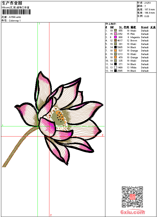荷花 点此上传花版兑乐绣币/现金 emb花版参数: 大小:130.50 KB / 尺寸:197*188[毫米] / 针数:21251针 / 线色:7 / 格式:emb / 版本:e2 版带文件需绣花软件方可打开,可配色打印导出各种格式或直接上机绣。如无绣花软件可下载1:1模拟效果图。 PNG图片信息:大小:0.4(MB) /图宽*高:745x711(像素) emb下载 1:1图下载 关闭 相似花版: 马 鱼 骷髅 骷髅 卡通 汉服 汉服 金鱼 鹤 鼠 小老鼠 章仔 靓花 靓花 靓花 靓花 虎 蜜蜂 靓花 龙身 龙身 虎头 上一个花样:荷花 下一个花样:马