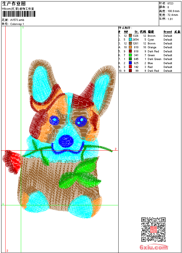 狗 点此上传花版兑乐绣币/现金 emb花版参数: 大小:72.00 KB / 尺寸:72*101[毫米] / 针数:8723针 / 线色:8 / 格式:emb / 版本:e2 版带文件需绣花软件方可打开,可配色打印导出各种格式或直接上机绣。如无绣花软件可下载1:1模拟效果图。 PNG图片信息:大小:0.1(MB) /图宽*高:274x382(像素) emb下载 1:1图下载 关闭 相似花版: 字母 字母兔 鸟 靓花 飞机 荷花 荷花 马 鱼 骷髅 骷髅 卡通 汉服 汉服 金鱼 鹤 鼠 小老鼠 章仔 靓花 靓花 靓花 上一个花样:靓花 下一个花样:字母