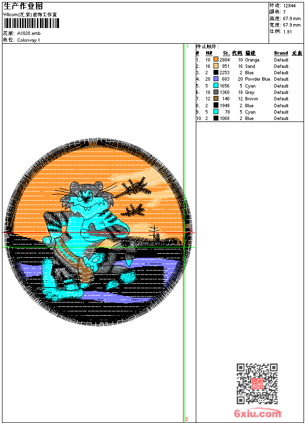 猫章 点此上传花版兑乐绣币/现金 emb花版参数: 大小:98.00 KB / 尺寸:68*68[毫米] / 针数:12944针 / 线色:7 / 格式:emb / 版本:e2 版带文件需绣花软件方可打开,可配色打印导出各种格式或直接上机绣。如无绣花软件可下载1:1模拟效果图。 PNG图片信息:大小:0.1 (MB) /图宽*高:257x257(像素) emb下载 1:1图下载 关闭 相似花版: 鹤 蜜蜂 靓花 靓花 卡通 树 装饰 卡通 保罗 polo 靓花 鸟 精品 鸟语花香 靓花 猫 风景山 狮子 人物 清皇帝 裙 单色花 鸟 靓花 上一个花样:兔子 下一个花样:鹤