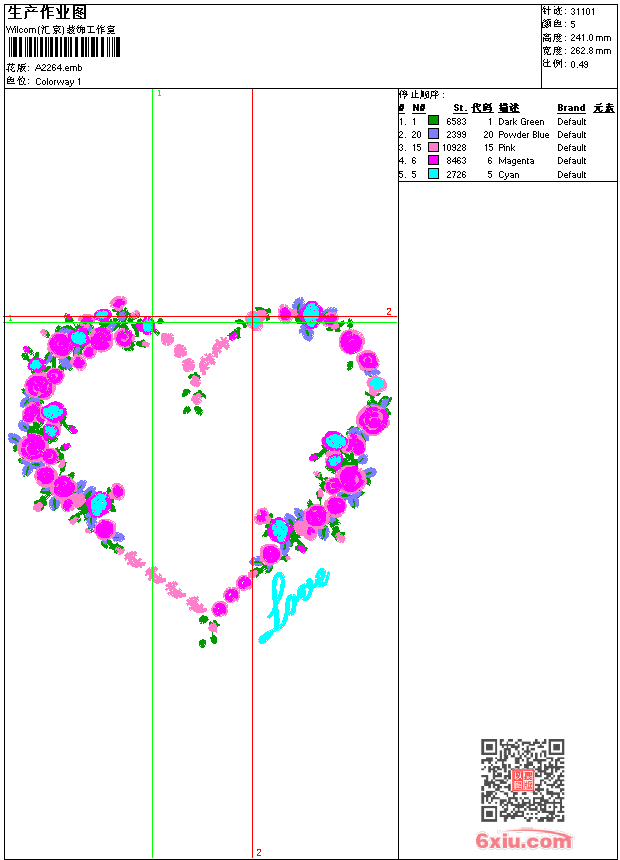 心形 点此上传花版兑乐绣币/现金 emb花版参数: 大小:267.50 KB / 尺寸:263*241[毫米] / 针数:31101针 / 线色:5 / 格式:emb / 版本:e2 版带文件需绣花软件方可打开,可配色打印导出各种格式或直接上机绣。如无绣花软件可下载1:1模拟效果图。 PNG图片信息:大小:0.5 (MB) /图宽*高:995x912(像素) emb下载 1:1图下载 关闭 相似花版: 靓花 简单花 靓花 鹤 靓花 靓花 猫和老鼠 唐老鸭 唐老鸭 唐老鸭 唐老鸭 米老鼠 鹿 龙 飞象 鹰 飞象 飞象 鹤 飞象 上一个花样:简单花 下一个花样:靓花