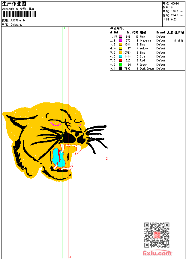 豹 点此上传花版兑乐绣币/现金 emb花版参数: 大小:191.50 KB / 尺寸:224*168[毫米] / 针数:45094针 / 线色:8 / 格式:emb / 版本:e2 版带文件需绣花软件方可打开,可配色打印导出各种格式或直接上机绣。如无绣花软件可下载1:1模拟效果图。 PNG图片信息:大小:0.8 (MB) /图宽*高:849x638(像素) emb下载 1:1图下载 关闭 相似花版: 虎 老虎 豹 恐龙 珠片 恐龙 珠片 飞马 猫头 猫头 鸟 孔雀 珠片 孔雀 鹰 猫头鹰 珠片 虎头 蝴蝶 狼头 狮头 中国风 蝴蝶 蝴蝶 蝴蝶 狗标 上一个花样:猩猩 下一个花样:虎 老虎