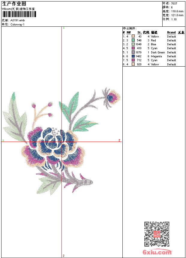 靓花 点此上传花版兑乐绣币/现金 emb花版参数: 大小:59.50 KB / 尺寸:121*111[毫米] / 针数:7037针 / 线色:6 / 格式:emb / 版本:9 版带文件需绣花软件方可打开,可配色打印导出各种格式或直接上机绣。如无绣花软件可下载1:1模拟效果图。 PNG图片信息:大小:0.2 (MB) /图宽*高:458x419(像素) emb下载 1:1图下载 关闭 相似花版: 蝴蝶 靓花 汉服 竹叶 竹叶 鸟 竹叶 竹叶 美人鱼 珠片 鹤 珠片 熊 米老鼠 米老鼠 牛头标 章仔 车标 吉利 geely 章仔 米老鼠 猫 车标 奔驰 万事如意 上一个花样:鸟 下一个花样:蝴蝶