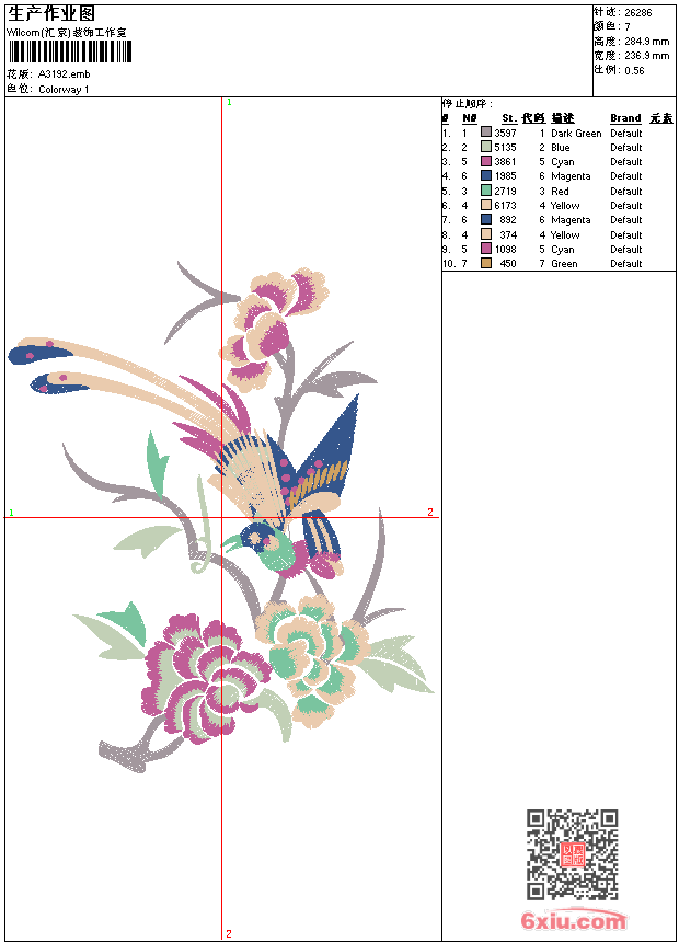 鸟 点此上传花版兑乐绣币/现金 emb花版参数: 大小:138.50 KB / 尺寸:237*285[毫米] / 针数:26286针 / 线色:7 / 格式:emb / 版本:e2 版带文件需绣花软件方可打开,可配色打印导出各种格式或直接上机绣。如无绣花软件可下载1:1模拟效果图。 PNG图片信息:大小:0.7 (MB) /图宽*高:897x1078(像素) emb下载 1:1图下载 关闭 相似花版: 靓花 蝴蝶 靓花 汉服 竹叶 竹叶 鸟 竹叶 竹叶 美人鱼 珠片 鹤 珠片 熊 米老鼠 米老鼠 牛头标 章仔 车标 吉利 geely 章仔 米老鼠 猫 车标 奔驰 上一个花样:鸟 圆形 下一个花样:靓花