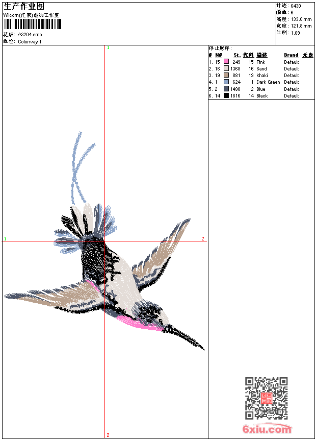 鸟 点此上传花版兑乐绣币/现金 emb花版参数: 大小:75.50 KB / 尺寸:122*133[毫米] / 针数:6430针 / 线色:6 / 格式:emb / 版本:e2 版带文件需绣花软件方可打开,可配色打印导出各种格式或直接上机绣。如无绣花软件可下载1:1模拟效果图。 PNG图片信息:大小:0.1 (MB) /图宽*高:461x503(像素) emb下载 1:1图下载 关闭 相似花版: 骷髅 竹 鹤 龙 汉服 人物 和服小美女 鸟 金鱼 鲤鱼 金鱼 中国传统年画 荷花 鸟 圆形 鸟 靓花 蝴蝶 靓花 汉服 竹叶 竹叶 鸟 竹叶 竹叶 上一个花样:鲤鱼 下一个花样:骷髅