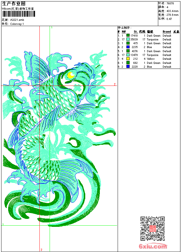 鲤鱼 中国传统年画 点此上传花版兑乐绣币/现金 emb花版参数: 大小:372.00 KB / 尺寸:279*433[毫米] / 针数:76078针 / 线色:4 / 格式:emb / 版本:e2 版带文件需绣花软件方可打开,可配色打印导出各种格式或直接上机绣。如无绣花软件可下载1:1模拟效果图。 PNG图片信息:大小:2.5 (MB) /图宽*高:1055x1640(像素) emb下载 1:1图下载 关闭 相似花版: 鲤鱼 中国传统年画 汉服 狼 荷花 荷花 鲤鱼 靓花 靓花 鸟 鸟 靓花 圆花 鸟 骷髅 骷髅 鲤鱼 鸟 骷髅 竹 鹤 上一个花样:翅膀 昆虫 抽象 下一个花样:鲤鱼 中国传统年画