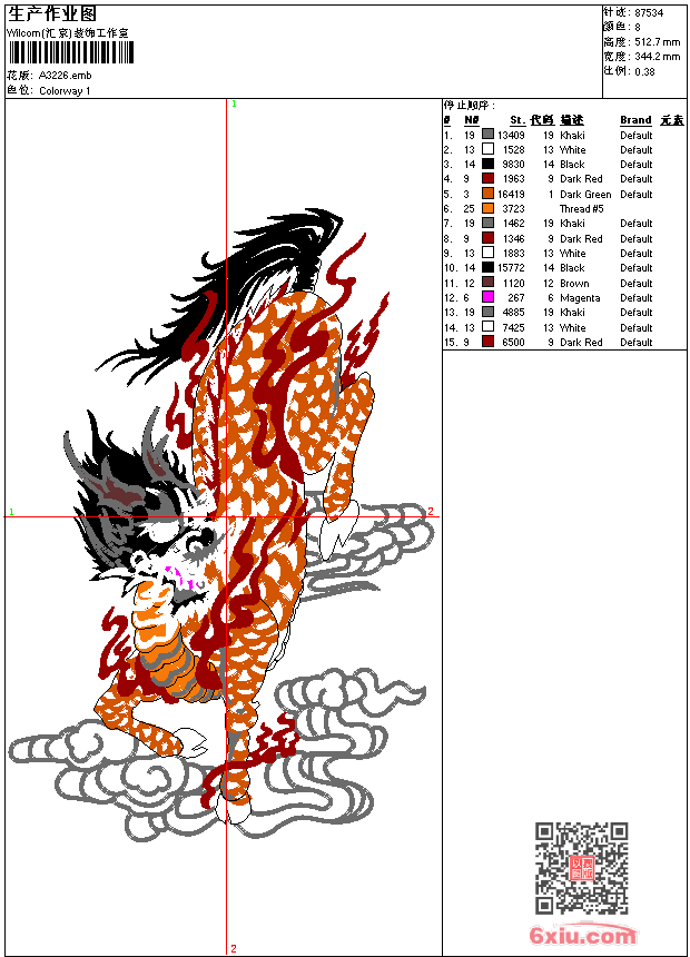 麒麟 点此上传花版兑乐绣币/现金 emb花版参数: 大小:421.00 KB / 尺寸:344*513[毫米] / 针数:87534针 / 线色:8 / 格式:emb / 版本:9 版带文件需绣花软件方可打开,可配色打印导出各种格式或直接上机绣。如无绣花软件可下载1:1模拟效果图。 PNG图片信息:大小:2.1 (MB) /图宽*高:1302x1940(像素) emb下载 1:1图下载 关闭 相似花版: 鸡 公鸡 物品 物品 翅膀 昆虫 抽象 鲤鱼 中国传统年画 鲤鱼 中国传统年画 汉服 狼 荷花 荷花 鲤鱼 靓花 靓花 鸟 鸟 靓花 圆花 鸟 骷髅 骷髅 上一个花样:梅花 梅花 下一个花样:鸡 公鸡