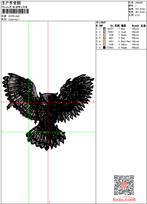 猫头鹰 点此上传花版兑乐绣币/现金 emb花版参数: 大小:1.84 MB / 尺寸:401*337[毫米] / 针数:285609针 / 线色:7 / 格式:emb / 版本:e2 版带文件需绣花软件方可打开,可配色打印导出各种格式或直接上机绣。如无绣花软件可下载1:1模拟效果图。 PNG图片信息:大小:2.4 (MB) /图宽*高:1519x1277(像素) emb下载 1:1图下载 关闭 相似花版: 骷髅 龙 抽象 靓花 靓花 骷髅 骷髅 鹰 抽象 抽象 骷髅 楼台亭阁 风景 汉服 树 鹤 梅花 梅花 麒麟 鸡 公鸡 物品 物品 翅膀 昆虫 抽象 上一个花样:鹤 中国风 下一个花样:骷髅