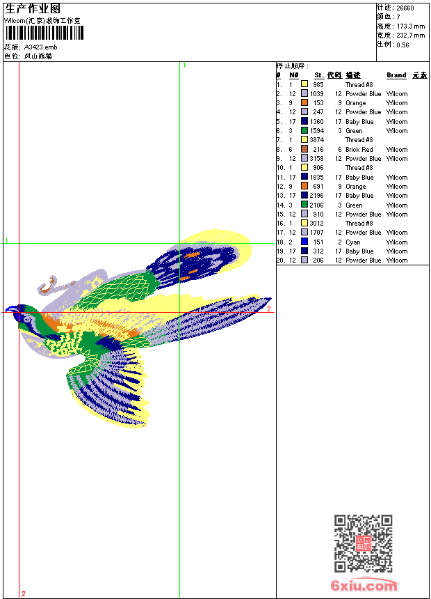 鸟 点此上传花版兑乐绣币/现金 emb花版参数: 大小:170.50 KB / 尺寸:233*173[毫米] / 针数:26660针 / 线色:7 / 格式:emb / 版本:e2 版带文件需绣花软件方可打开,可配色打印导出各种格式或直接上机绣。如无绣花软件可下载1:1模拟效果图。 PNG图片信息:大小:0.6 (MB) /图宽*高:881x656(像素) emb下载 1:1图下载 关闭 相似花版: 锚 塔 paris 凤凰 圆形 鹤 虎头 老虎 蜜蜂 蛇 鸟 鸟 章标 章标 叶 鸟 狼头 猫 猫 虎头 靓花 荷花 上一个花样:凤凰 下一个花样:锚