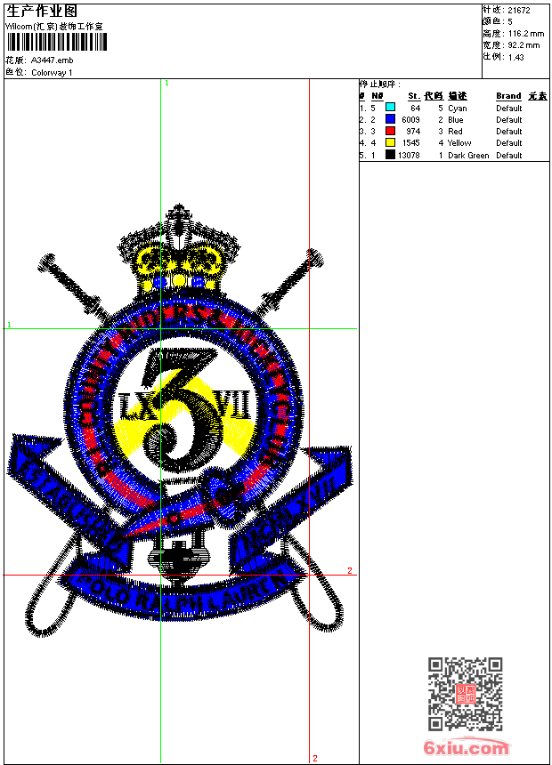 章标 点此上传花版兑乐绣币/现金 emb花版参数: 大小:141.00 KB / 尺寸:92*116[毫米] / 针数:21672针 / 线色:5 / 格式:emb / 版本:e2 版带文件需绣花软件方可打开,可配色打印导出各种格式或直接上机绣。如无绣花软件可下载1:1模拟效果图。 PNG图片信息:大小:0.2 (MB) /图宽*高:349x440(像素) emb下载 1:1图下载 关闭 相似花版: 靓花 人物 头像 人物 头像 章标 章标 章标 章标 章标 章标 章标 章标 章标 骷髅 王冠 靓花 狮标 鸟 保罗 polo 鸟 人物 抽象 章标 warrior 上一个花样:抽象 下一个花样:靓花